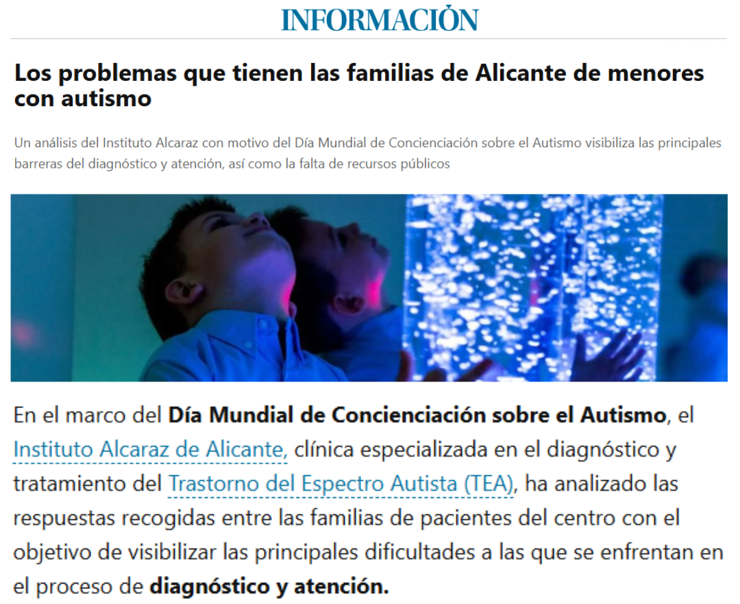 Un análisis del Instituto Alcaraz con motivo del Día Mundial de Concienciación sobre el Autismo visibiliza las principales barreras del diagnóstico y atención.